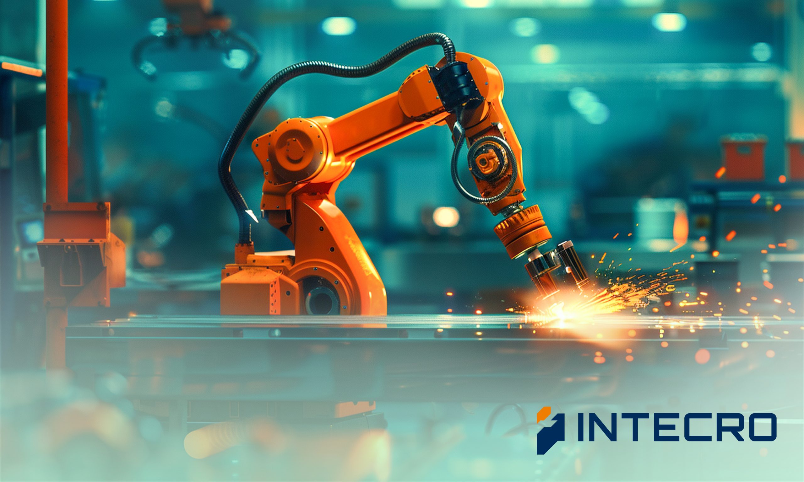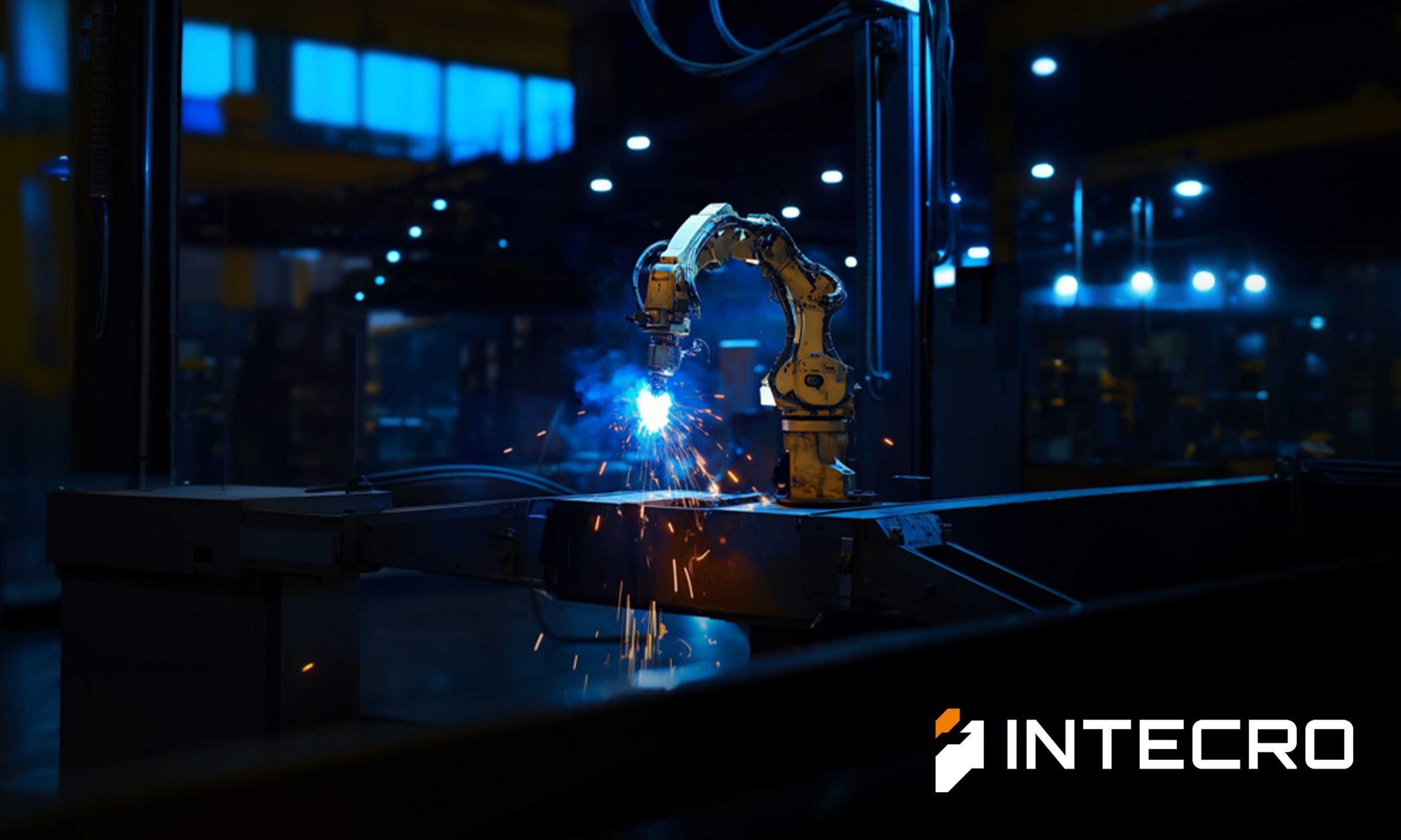 Intecro logosu, robotik sistemler ve otomasyon teknolojileri alanında faaliyet gösteren bir şirketin kurumsal duruşunu; teknik güvenilirlik, mühendislik gücü ve üretkenlik gibi değerlerle ifade eder.