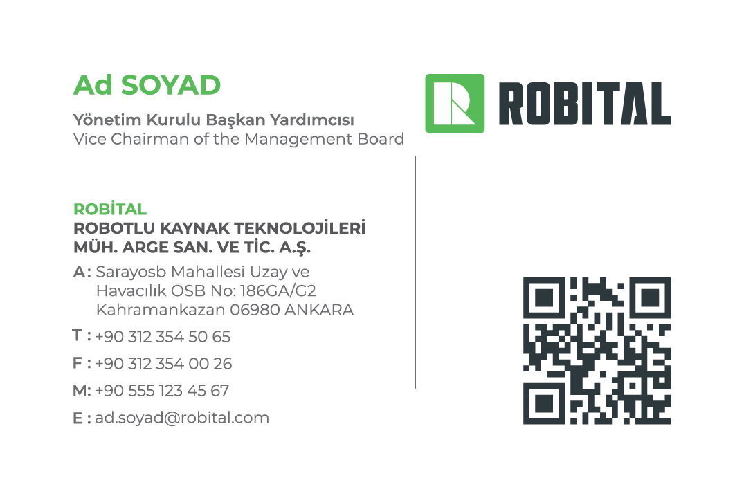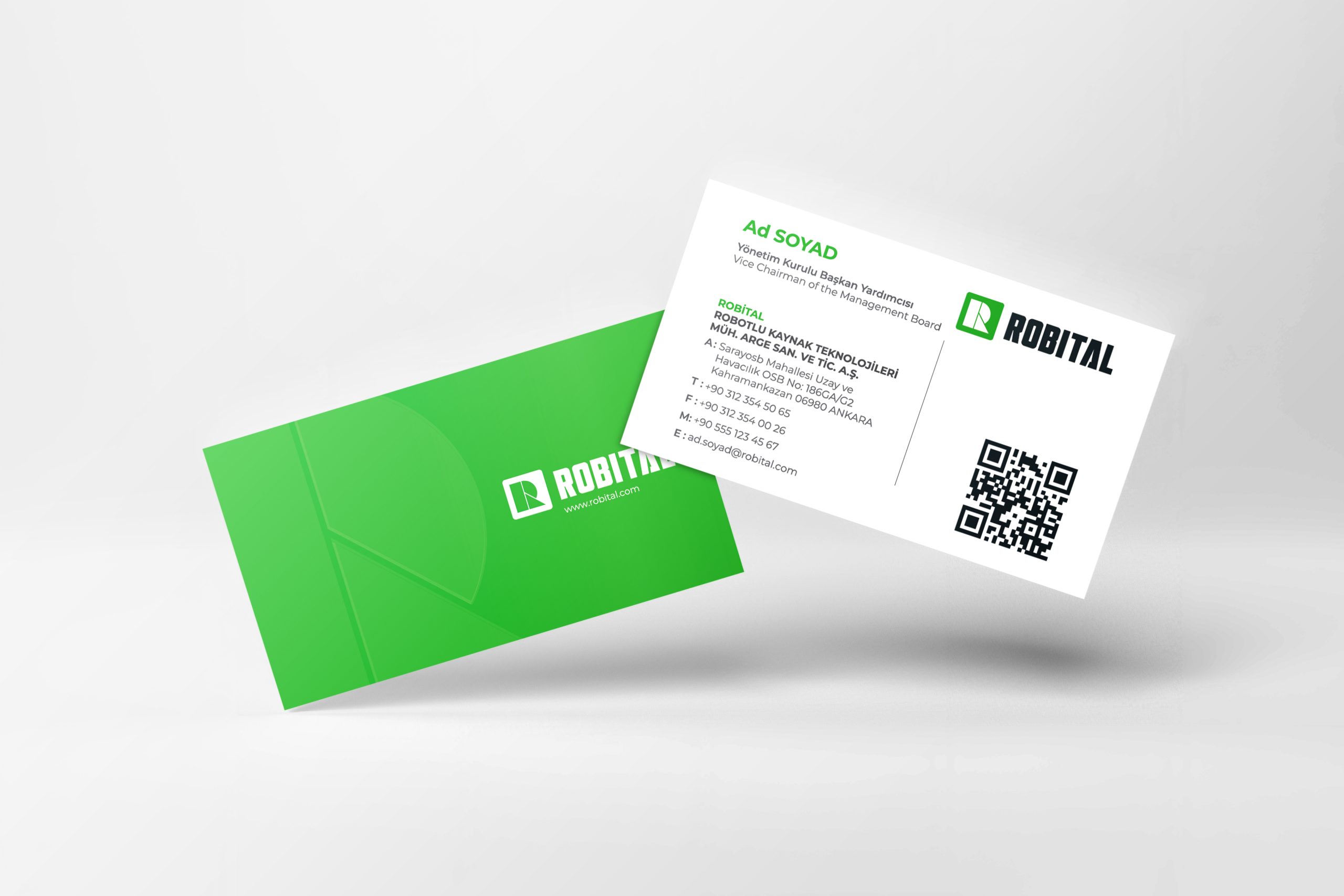 Kartvizit tasarımı, Robital’in kurumsal kimliğini yansıtan sade, profesyonel ve teknolojik bir anlayışla hazırlanmalıdır.