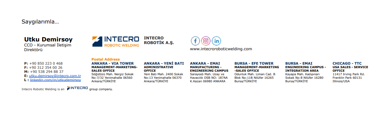 Bu e-posta imzası, Intecro Robotic Welding Kurumsal Kimlik Kılavuzu doğrultusunda tasarlanmıştır.