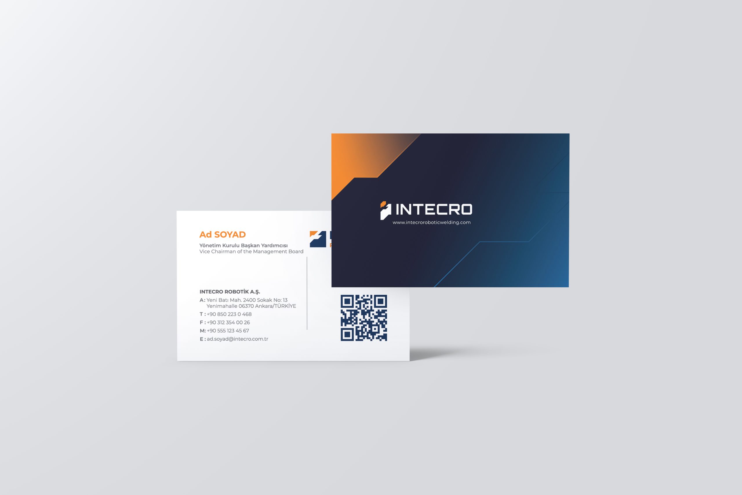 Kartvizit tasarımı, Intecro Robotic Welding’in kurumsal kimliğini yansıtan sade, profesyonel ve teknolojik bir anlayışla hazırlanmalıdır.