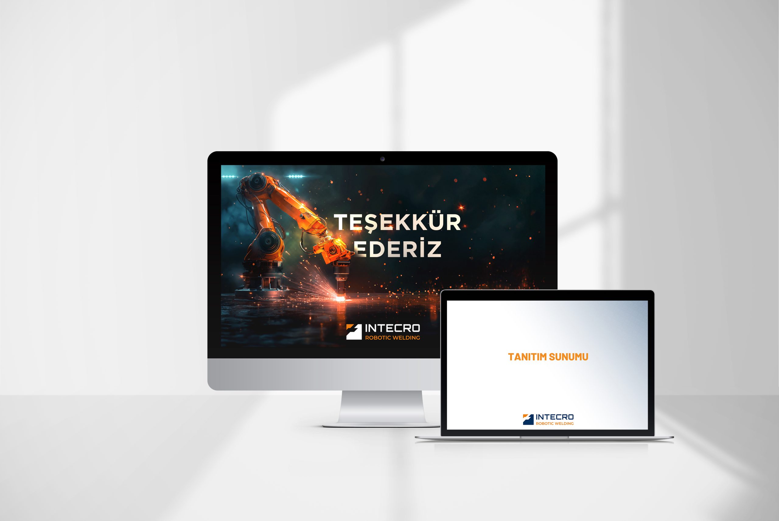 Intecro Robotic Welding sunum şablonları, kurumsal kimlik standartlarına uygun olarak hazırlanmıştır.
